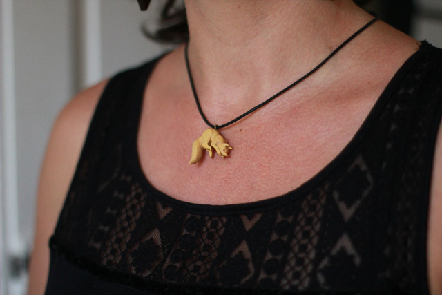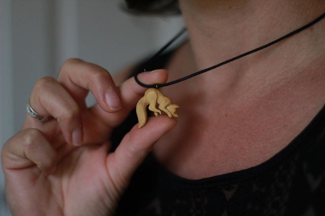 Pendentif en buis entièrement sculpté au couteau. Pièce unique.