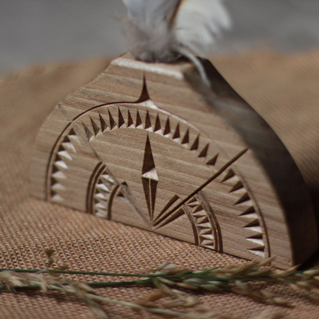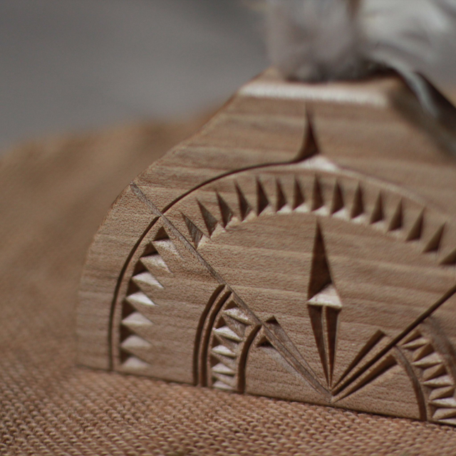 Soliflore / porte plume en noyer sculpté au couteau.